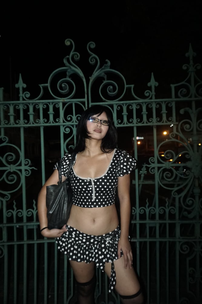 for reference: model is 166cm tall (33-26-38) and wearing top size medium and bottom size small in black & white polka dot.